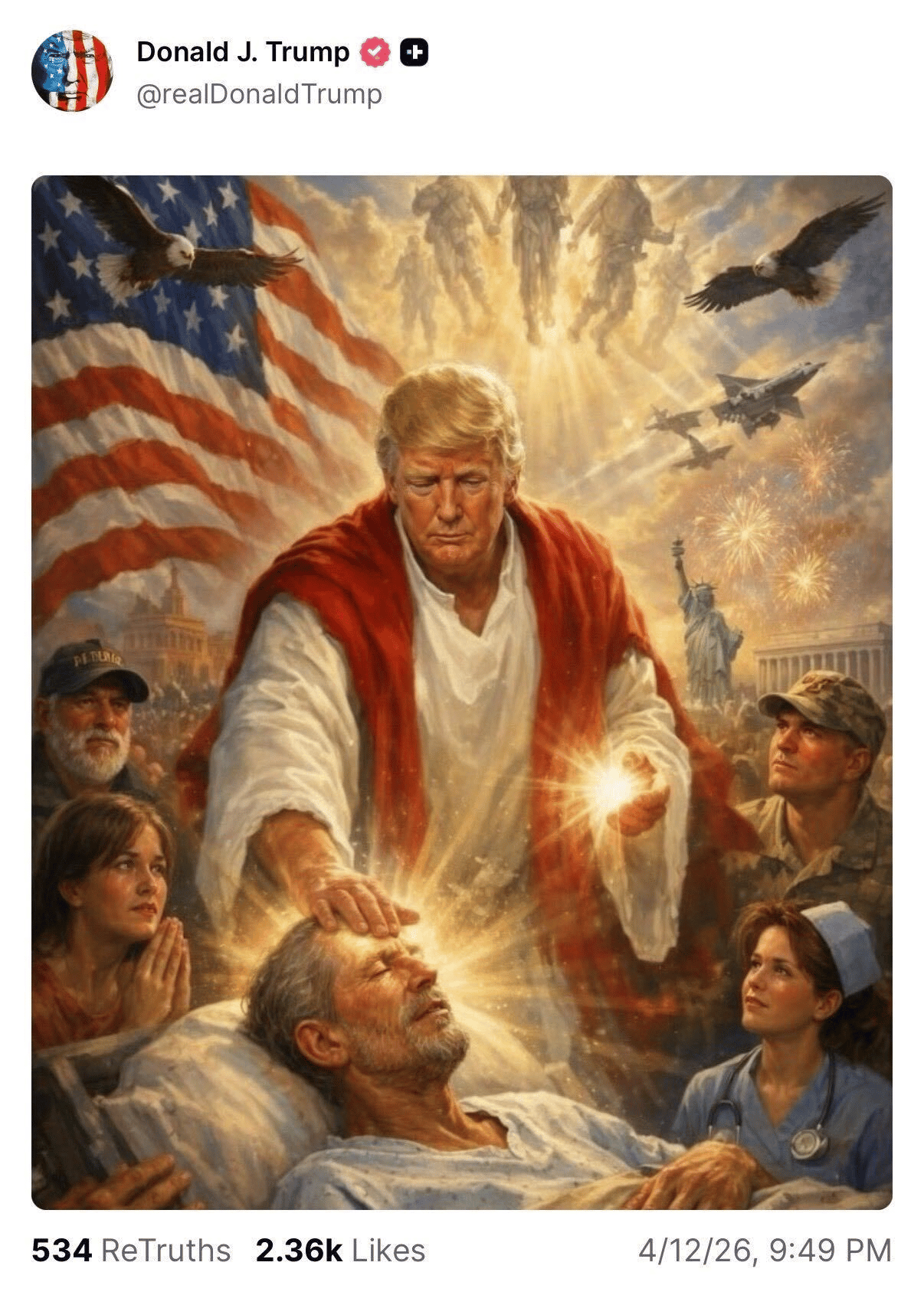 Because after stewing for 45 more minutes about how really the POPE was the problem and everyone should see that, Trump posted this AI slopjob: